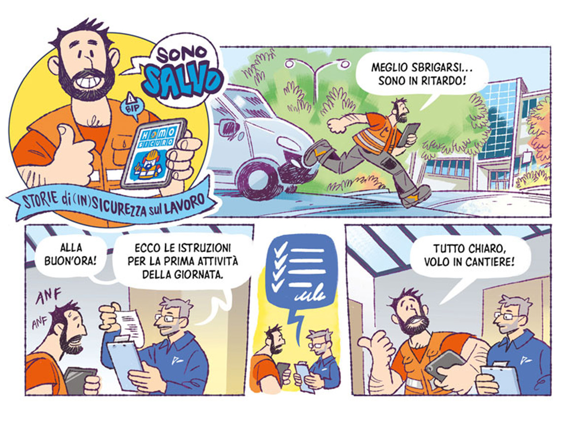 In Acinque, la promozione della cultura della sicurezza passa anche attraverso strumenti non convenzionali, pensati per coinvolgere in modo autentico e diretto tutte le persone del Gruppo. È con questo spirito che, già nel 2022 grazie a un progetto di collaborazione aziendale, nasce “Sono Salvo”, una miniserie a fumetti che racconta le disavventure di Salvo, scampato a vari near miss. Nel 2025 Salvo è “cresciuto” e ritorna con cinque episodi dove rappresenta i cinque comportamenti fondamentali dei Champions – ovvero i pilastri per agire e sostenere la sicurezza in modo concreto e quotidiano.